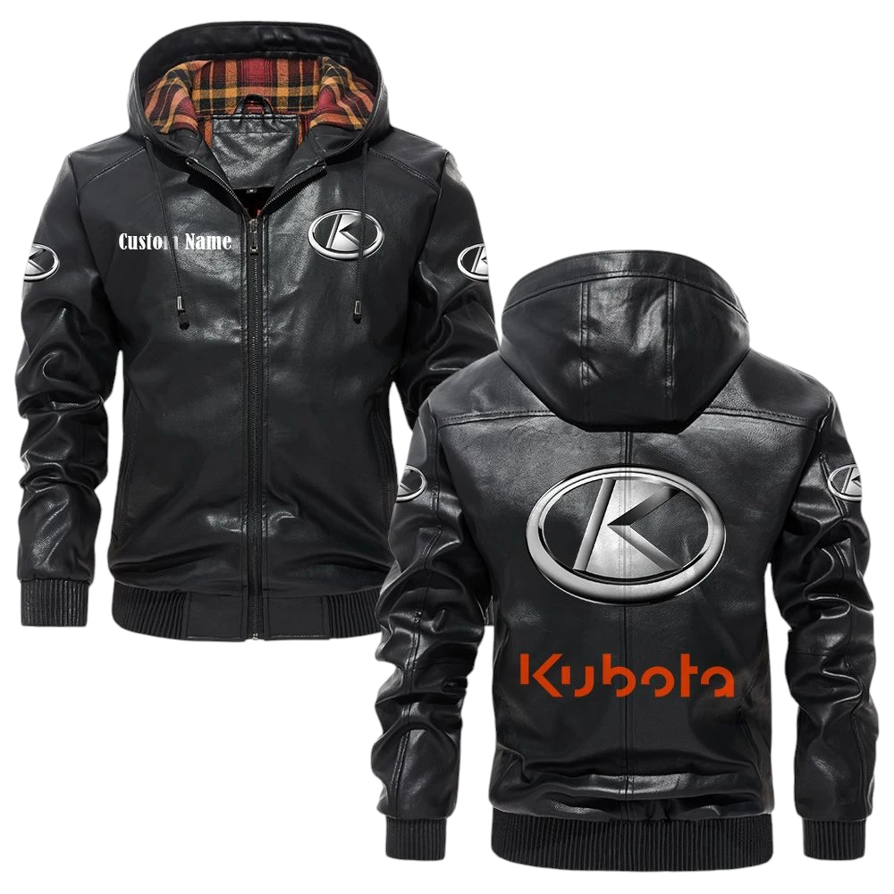 Kubota Exclusive Logo Hooded Jacket PU Leather x Durable Windproof Warm Soft Checkered Lining, Custom Name HG260325Y47JHLCT1KUB