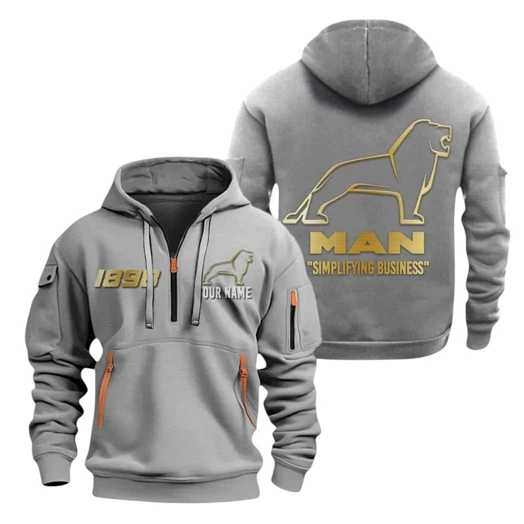Man Truck Half Zip Hoodie, Sport Hooded Multi-Pocket, Custom Name HG120325Y25QZ2HCT1MAN